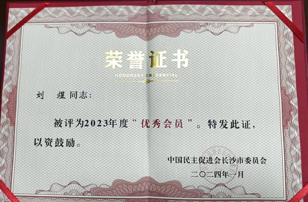 近日,民进会市委2023年度总结表彰暨2024年工作部署会议在长沙召开。民进长沙市委会李平主委出席并发表重要讲话。会上表彰了一批先进支部和个人。我校民进支部被评为市级“四星级支部”,支部刘煜老师被授予“先进个人”荣誉称号。