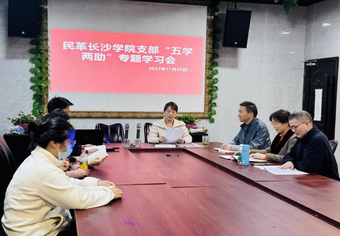 2023年11月25日,民革长沙学院支部开展“凝心铸魂强根基团结奋进新征程”—深入推进“五学两助”专题学习活动,进一步引导盟员学思想、学精神、学嘱托、学统战理论政策、学统一战线历史和优良传统,助推统战工作高质量发展,助力学校高质量发展。