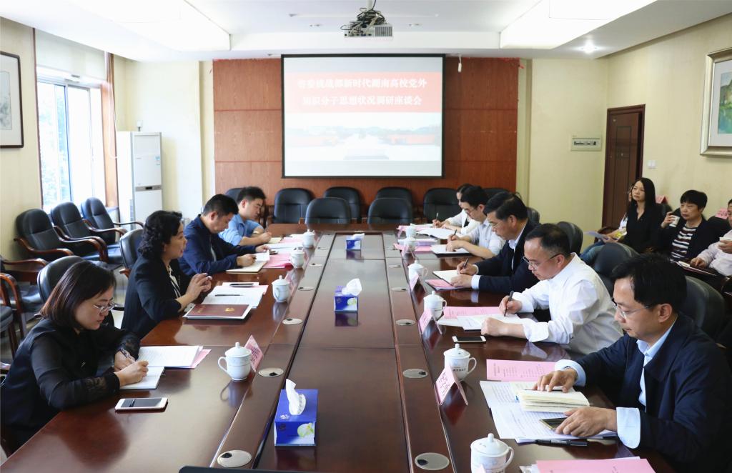 419日下午,省委统战部副部长胡东风一行4人来我校就“新时代湖南高校党外知识分子思想状况” 进行专题调研。校党委书记韦成龙、党委副书记屈林岩,组织统战部、宣传部、人事处负责人以及学校党外知识分子代表参加调研座谈会。韦成龙主持会议。