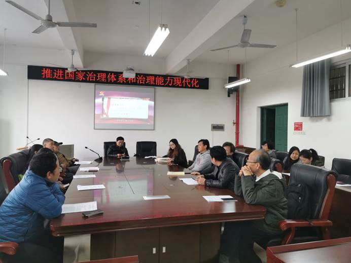12月14日,九三学社长大支社学习贯彻党的十九届四中全会精神暨“不忘合作初心,继续携手前行”主题教育活动在土木学院会议室举行,支委成员及在长沙的全体社员参加了学习讨论和主题教育活动。