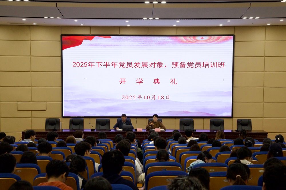 10月18日,2025年秋季学期党员发展对象、预备党员培训班在致远楼学术报告厅正式开班。本次培训紧扣深入学习贯彻习近平新时代中国特色社会主义思想主线,以深化党章党规党纪理解、坚定理想信念、提升党性修养为核心目标,特邀校内外5位专家教师授课,共有301名学员参与培训。